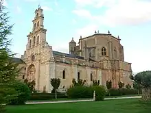 The monastery was initially founded on a different site called Montesacro in about 1146 by Domingo Gómez, illegitimate son of Queen Urraca of León and Castile and her lover Count Gómez González de Candespina. Domingo had become interested in the Praemonstratensian order on a visit to France, and this was the first Praemonstratensian house in Spain.[1] The monastery was then moved to its present site in 1152, having been given the estate of La Vid by Alfonso VII of León and Castile, who was the half-brother of Domingo Gómez.