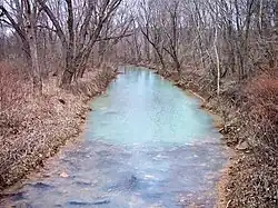 Monday Creek is a tributary of the Hocking River, 27 miles (43 km) long, in southeastern Ohio in the United States. Via the Hocking and Ohio Rivers, it is part of the watershed of the Mississippi River, draining an area of 116 square miles (300 km2) on the unglaciated portion of the Allegheny Plateau.[7] Monday Creek has been badly affected by acid mine drainage.