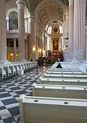 Despite the policy of state atheism in East Germany, Christian pastor Christian Führer regularly met his congregation at St. Nicholas Church in Leipzig for prayer from 1982 onward.[2][3] In Leipzig the demonstrations began on 4 September 1989 after the weekly Friedensgebet (prayer for peace) in the St. Nicholas Church with parson Christian Führer and eventually filled the nearby Karl Marx Square (today known again as Augustusplatz). Safe in the knowledge that the Lutheran Church supported their resistance, many dissatisfied East German citizens gathered in front of the church, and non-violent demonstrations began in order to demand rights such as the freedom to travel to foreign countries and to elect a democratic government. The location of the demonstration contributed to the success of the protests. Over the next seven years the Church grew, despite authorities barricading the streets leading to it, and after church services peaceful candlelit marches took place.[2] The secret police issued death threats and even attacked some of the marchers, but the crowd still continued to gather.[2]