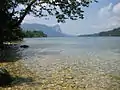 In 1864, remains of neolithic pile dwellings were discovered in the lake.