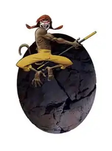 Monkey hatches from a stone egg and makes his home in the forest. Over time, he becomes obsessed with seeking immortality, and travels the world to find a teacher. He finds Subodhi in the Mountain of Heart and Mind, who gives him the name Sun Wu Kong — the Monkey with the Realisation of Emptiness.