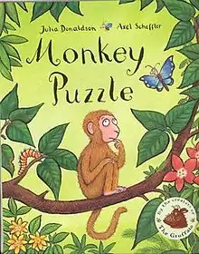 Monkey Puzzle (in the United States of America, Where's My Mom?), written by Julia Donaldson and illustrated by Axel Scheffler, is an illustrated children's story book, published in 2000 by Alison Green Books. Donaldson dedicated the book to her cousin's children, Tom, Billy, Emma and Katie.