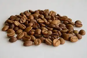 Monsooned Malabar, also known as Monsoon Malabar, is a process applied to coffee beans. The harvested coffee seeds are exposed to the monsoon rain and winds for a period of about three to four months, causing the beans to swell and lose the original acidity, resulting in a flavor profile with a practically neutral pH balance.[1][2] The coffee is unique to the Malabar Coast of Karnataka, Kerala and the Nilgri mountains of Tamil Nadu and has protected status under India's Geographical Indications of Goods Act.[3][4] The name Monsoon Malabar is derived from exposure to the monsoon winds of the Malabar coast.[1]