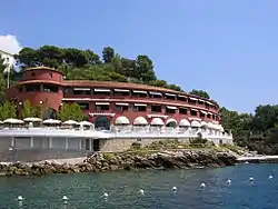 The Monte-Carlo Beach is a hotel located in Roquebrune-Cap-Martin, a commune in the Alpes-Maritimes department in southeastern France. Situated on the Côte d'Azur just outside Monaco proper, the Monte-Carlo Beach hotel belongs to the Société des bains de mer de Monaco. It was built in 1929 by the architect Roger Seassal and was redesigned in 2009 by India Mahdavi.[1]