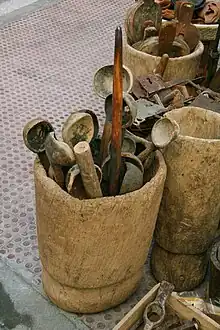 Tanware including jars, cucharas (spoons), comales (tortilla griddles), and bowls were found with red, and black-on-red paintings.[6] Grayware also decorated with red and black paintings were found and are most likely imported from Oaxaca.[6]