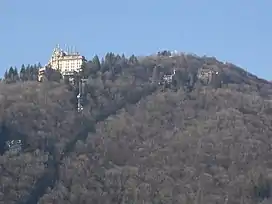 The Grand Hotel Campo dei Fiori and the upper terminal of the Vellone-Grand Hotel Campo dei Fiori funicular, both abandoned (since 1968 and 1953, respectively), are located near its top.[4][5][6]