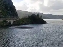 Prior to that, the last time the spillway was active was February 16, 2017. After a number of storms had caused the lake level to rise 35.5 inches (90 cm) since January 1, 2017, the reservoir was on the cusp of spilling once again at 439.2 feet (133.9 m).[16] Eager to witness this event, a number of local boaters and recreation enthusiasts generated enough wake to cause the reservoir to spill, albeit briefly, at 1:45 p.m. on February 13, 2017. Lake Berryessa reservoir filled and ran into its glory hole spillway for the first time in over a decade on February 16, 2017, at approximately 3:00 p.m. PST .[17]