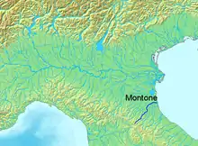 The Montone is a river in the historical region of Romagna, which is in the present-day region of Emilia-Romagna in northern Italy. It is the northernmost river on the east-facing slopes of the Apennines to flow directly into the Adriatic Sea rather than entering the Po. Its Latin name was Utis or Vitis.[1]