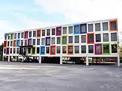 ![]() Rainbow colored windows on the building's exterior, 2020. | |