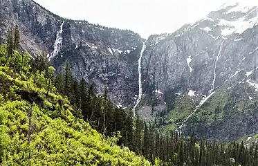 Monument Falls is a waterfall located in Glacier National Park, Montana, US. Monument Falls descends from meltwater off Sperry Glacier en route to Avalanche Lake. Numerous other waterfalls are located in the immediate area but they remain unnamed.[2][3]