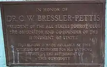 Plaque at the base of the monument, honoring Dr. C. W. Bressler-Pettis