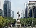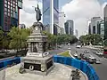 The Monument to Cuauhtémoc is an 1887 monument dedicated to the last Mexica ruler (tlatoani) of Tenochtitlan Cuauhtémoc, located at the intersection of Avenida de los Insurgentes and Paseo de la Reforma in Mexico City. It is the work of Francisco Jiménez and Miguel Noreña in the "neoindigenismo" (academic indigenismo style), and was proposed to promote the new government of Porfirio Díaz.