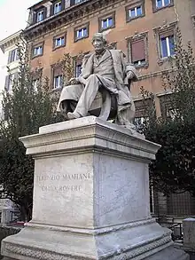 The Monument to Terenzio Mamiani della Rovere is a memorial statue to an 18th-century patriot and statesman, located alongside the Corso Vittorio Emanuele II at a small piazza along Via degli Acciaioli. Mamiani (1799–1885) was in life a liberal Catholic, and posthumously acknowledged as having been a free-mason: his service as both minister in the Papal States and under the Kingdom of Sardinia, later Senator in the Kingdom of Italy bridged contentious or warring factions.