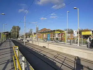 Moor Road is a tram stop for Phase 3b of the Manchester Metrolink. It opened on 3 November 2014.[1] and is on the Airport Line on Moor Road at the junction of Bideford Drive.[2]