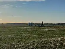 Oil battery near Carlyle with Moose Mountain Upland in the background