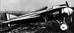 The AC was conceived in mid-1916, being derived from the Type N via the unbuilt Type U. It differed from earlier single-seat Morane-Saulnier aircraft in that it had ailerons for lateral control rather than wing warping, and because of its rigid wing bracing, with a wire braced truss of steel tubes supporting the wings from below.[1] It appeared in autumn of that year, and was found to be aerodynamically clean.