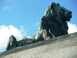 The war memorial, made of bronze and granite, was completed in 1921 and designed by Thomas Hayton Mawson. A bronze lion sits atop a stepped base. On 20 January 1993 the monument was registered as a Grade II structure at British Listed Buildings.[2]