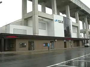 - ↑ 駅 別 運 輸 実 績 [Station passenger figures (Fiscal 2015)] (PDF) (in Japanese). Japan: Ishikawa Prefectural Government. 2016. Retrieved 2 January 2018.