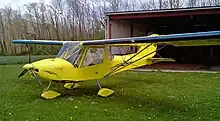 The aircraft is made with a welded steel tubing fuselage. The wings can be constructed with either an aluminum sheet or wooden structure, with its flying surfaces covered in doped aircraft fabric in both cases. The wooden wings include leading edge slots. Its 9.86 m (32.3 ft) span wing has an area of 13.4 m2 (144 sq ft) and is supported by "V" struts and jury struts. The standard engine recommended is the 80 hp (60 kW) Rotax 912UL four-stroke powerplant. The World Directory of Leisure Aviation 2011-12 states that landing gear uses sprung aluminium suspension for all three wheels and that the nose wheel is freely castering and steering is accomplished with differential braking.[1] Later models have sprung aluminium suspension for the main wheels and a rudder pedal-controlled steerable nose wheel.