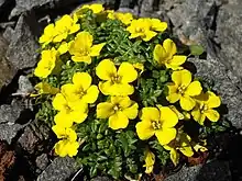 Morisia is a monotypic genus of ornamental plant in the family Brassicaceae.[1] Its only species is Morisia monanthos, also called M. hypogaea. It is native to the Mediterranean islands of Corsica and Sardinia.[1]