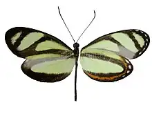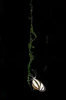 Adults mimic Scada karschina and other Ithomiini butterfly species.[2]