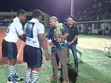 ![]() Fiji PM, Frank Bainimarama awarding the trophy to Nadro captains, Setefano Somoca and Mosese Volavola. | |||||||||||||||||||||||||||||