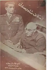 During the Second World War, Hamadani was appointed editor in chief of Keyhan كيهإن the highly circulated and most popular daily newspaper distributed nationally throughout Iran. In his editorials, he embraced and supported the political platform of nationalizing Iran's oil industry, controlled by the Anglo Iranian Oil Company (AIOC, later renamed British Petroleum BP), as introduced by Dr.Mohammad Mossadegh and the National Front of Iran. In 1949, after a few years serving in the capacity of Keyhan’s editor-in-chief, he founded the weekly magazine Kavian كأؤيإن (a politically oriented publication with a distinctly secular and nationalistic voice) and became one of Mossadegh's ardent supporters in the latter's plan to nationalize Iran's oil industry (see Abadan Crisis). He implemented his grandiose plans for expansion of Kavian 's activities to include a printing press and publishing house. He imported a printing press capable of printing the cover pages of Kavian in color, a novel and unique capability that increased the weekly magazine's popularity and circulation. He also founded a publishing company and bookstore, Bongah Matbouati Safialishah بنكاه مطبوعاتى صفيعليشاه to publish his own as well as other literary works and books. In 1951 he was invited by President Harry Truman, together with twenty other Iranian intellectuals, businessmen and influential journalists (Hamadani, Alamooti and Dr. Shifteh)[3] to visit the United States in conjunction with the "International Leadership" program implemented by Truman's administration. Hamadani accompanied Dr. Mossadegh during his visit to the United Nations where the latter successfully defended Iran's claims against AIOC and BP and argued for the Iranian government's position in regards to the oil nationalization platform of the National Front.[3] Although the international court at Hague ruled in favor of Iran, President Eisenhower was persuaded, by the British government's claims of Mossadegh's collusion with the Communist Party of Iran (Hezb Tudeh حزب توده) and, in order to prevent the potential demise of Iran away from the west and into the Soviet sphere of influence, agreed for the CIA to collaborate and support the ongoing British Intelligence Service MI6 plans aimed at orchestrating the overthrow of Mossadegh by a military coup (1953 Iranian coup d'état). This attempt failed at first and led to the Shah's leaving the country, but on August 19, 1953, the waves turned and Mossadegh was detained by the new Prime Minister General Zahedi appointed by Mohammad Reza Shah. Hamadani's stance against the monarchy and in support of Mossadegh would cost him dearly: after the CIA/MI6-led coup that overthrew Mossadegh,[4] Kavian 's offices and printing presses were looted and burned. Mossadegh, a number of his cabinet ministers and all other journalists and politicians that supported him were arrested. Some were accused of conspiring with the Communist Tudeh Party of Iran (Hezb Tudeh حزب توده) to overthrow the monarchy and institute a new republican constitution. They were treated as traitors and tried in military courts. Some, like Mossadegh's Minister of Foreign Affairs, Dr. Hossein Fatemi were executed, while others, like Hamadani were imprisoned. Mossadegh was tried and exiled to his native city of Ahmadabad. Hamadani was eventually banished from Iran. He left his family behind, relinquishing his printing and publishing businesses to be managed by his brothers Parviz, Yahia, Mansour and Nasser.. For the next 50 years, he lived in exile in Rome, Italy, and later in Los Angeles, California, where he continued his literary activities by translating various French, English, and Italian authors into Persian. After the Islamic Revolution in Iran in 1979 resulting in the immigration of his extended family to the United States, he also left Italy to join them in Los Angeles, and continued to publish numerous articles, books and translations. A documentary film about his life was produced by the Center for Iranian Jewish Oral History and is available from the Library of Congress.[5] Hamadani died on 2 October 2009.