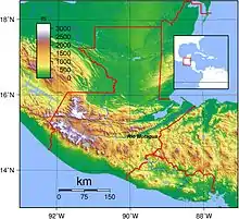 The Motagua River valley also marks the Motagua Fault, the tectonic boundary between the North American and the Caribbean Plates.[6] The Motagua fault has been the source of several major earthquakes in Guatemala.[7]