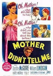 Mother Didn't Tell Me is a 1950 American comedy film written and directed by Claude Binyon. It is based on the 1949 book The Doctor Wears Three Faces by Mary Bard. The film stars Dorothy McGuire, William Lundigan, June Havoc, Gary Merrill, Jessie Royce Landis and Joyce MacKenzie. The film was released on March 3, 1950, by 20th Century Fox.[1][2][3]