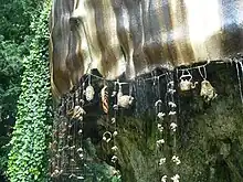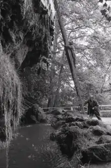 Mother Shipton's Cave (or "Old Mother Shipton's Cave") is at Knaresborough, North Yorkshire, England, near the River Nidd. Nearby is a petrifying well, also known as a dropping well.[1] The latter is the oldest tourist attraction to charge a fee in England, and has been operated since 1630.[2] The water of the well is so rich in sulphate and carbonate[1] that artefacts may be put in the well to be "petrified" (encrusted) as a tourist attraction.[3]