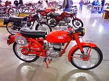 Parilla was an Italian motorcycle manufacturing company. It was founded in 1946 by Giovanni Parrilla, who dropped an 'R' in his name for the company title. He began by designing, building and racing a 248cc single cylinder, ohc motorcycle, which he modified to take a dohc.[1] After this, he produced a variety of road bikes with; 98cc, 125cc and 250cc engines. In 1952 motorcycle designer Soncini was appointed and improved the range of motorcycles available. In the early 60s Parrilla experimented with a 125cc rotary-valve two-stroke attached to a 5-speed gearbox, but this project was abandoned and the company folded in 1967. [2]