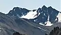 This landform's name was officially adopted in 1969 by the U.S. Board on Geographic Names.[3] This mountain, Cameron Pass, Cameron Glaciers, Cameron Creek, and Cameron Basin are named after Amos Benson Cameron (1872-1951), an early settler of this area who homesteaded for 41 years in the Deer Park area with his wife and 14 children.[4] He pioneered the first trail into Cameron Basin.