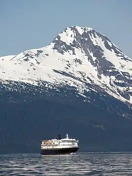 Mount Golub is a prominent 4,194 ft (1,280 m) mountain summit located in the Chilkat Range of the Saint Elias Mountains, in the U.S. state of Alaska. This peak is situated 29 miles (47 km) northwest of Juneau, and 2 mi (3 km) west of Lynn Canal, on land managed by Tongass National Forest. Although modest in elevation, relief is significant since Mount Golub rises above tidewater in less than two miles. The mountain's name was officially adopted in 1972 by the U.S. Board on Geographic Names to commemorate Harvey Golub (1930–1971), member of the 1968 first ascent party.[3] Other members of the party were Richard Folta, Delbert Carnes, and Keith Hart.[3] Hart submitted the name for consideration following the September 4, 1971, untimely death of Harvey Golub who perished in the Alaska Airlines Flight 1866 disaster.[3] That flight, which took all 111 lives aboard, crashed in a canyon approximately seven miles south of his namesake mountain.