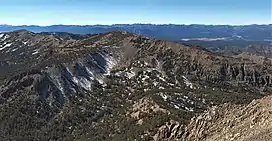 Mount Houghton is set seven miles north of Lake Tahoe in the Mount Rose Wilderness, on land managed by the Humboldt-Toiyabe National Forest. It is the highest point of Relay Ridge, second-highest peak within the wilderness, and ranks as the seventh-highest peak of the Carson Range,[3] which is a subset of the Sierra Nevada. It is situated 1.4 miles (2.3 km) north of Relay Peak, 1.4 miles (2.3 km) southwest of line parent Mount Rose and six miles (9.7 km) north of Incline Village. Topographic relief is significant as the west aspect rises 2,000 feet (610 meters) above Gray Creek in one mile. The Tahoe Rim Trail traverses the southern base of the peak, providing an approach option.