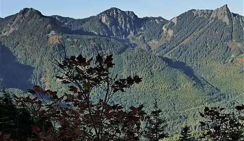 Mount Kent is a 5,087-foot (1,551-metre) mountain summit located in east King County of Washington state.[4] It's part of the Cascade Range and is situated on land managed by Mount Baker-Snoqualmie National Forest. Precipitation runoff on the mountain drains north into Alice Creek, a tributary of the South Fork Snoqualmie River. The nearest higher neighbor is McClellan Butte, 1.16 mi (1.87 km) to the north, and Mount Defiance is set 4 mi (6.4 km) to the northeast across the Interstate 90 corridor.[1]