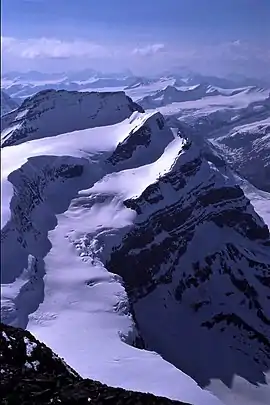 Mount King Edward is a mountain located at the head of the Athabasca River valley in Jasper National Park, Canada. Mt. King Edward is situated on the Continental Divide with Mt. Columbia 51⁄2 km (3.4 mi) east. The mountain was named in 1906 by Mary Schäffer Warren after King Edward VII.[1]