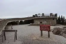 An exhibit hall is open seasonally at the summit with information about the mountain's natural, cultural and historical heritage. The park operates a restaurant and a small tent camping sites seasonally.[2] The buildings were built in the 1950s and renovation is planned. Most visitors come between May and November because the only access is the Blue Ridge Parkway but Kevin Bischof, who became superintendent late in 2018, hopes to change that. The park is staffed year-round but most people would not be able to reach the park during the worst weather conditions.[3]