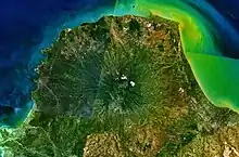 Mount Muria or Gunung Muria is a dormant volcano on the north coast of Java, Indonesia. It is located in the center of the Muria peninsula, which juts northward into the Java Sea on the north coast of Central Java, Indonesia east of Semarang, the capital of the province. Mount Muria is 1602 meters high but once was maybe twice that height. Mount Muria was once an island, separated from Java by the Muria Strait. This strait closed around 1657.[1]