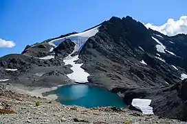 Mount Pulitzer, also known as Snagtooth, is a 6,283-foot (1,915-metre) mountain summit located within Olympic National Park in Jefferson County of Washington state.[1][4] Mount Pulitzer is the sixth-highest peak in the Bailey Range, which is a subrange of the Olympic Mountains.[1] Its nearest neighbor is Mount Ferry, 0.58 mi (0.93 km) to the northeast, and its nearest higher neighbor is Stephen Peak, 2.58 mi (4.15 km) to the north.[1] Mount Olympus is set 6.8 mi (10.9 km) to the southwest. In clear weather, the mountain can be seen from the visitor center at Hurricane Ridge. Precipitation runoff from the mountain drains into tributaries of the Elwha and Hoh Rivers. The first ascent of the summit was made in 1961 by Doug Waali, Bob Wood, and Kent Heathershaw via the east ridge.[5]
