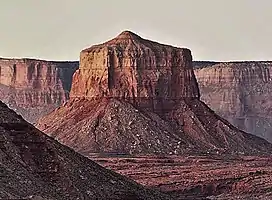 This isolated butte is an erosional remnant composed of Permian Kaibab Limestone and Coconino Sandstone.[4] This sandstone, which is the third-youngest stratum in the Grand Canyon, was deposited 265 million years ago as sand dunes. According to the Köppen climate classification system, Mount Sinyella is located in a Cold semi-arid climate zone.[5]