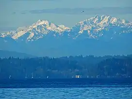 ![]() Mount Skokomish (left) and Mount Stone (right) seen from Seattle | |