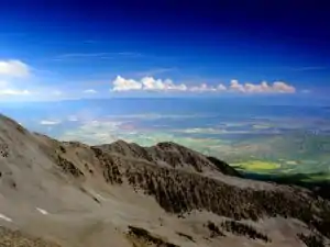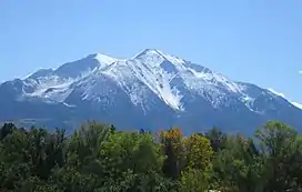 Mount Sopris is a twin-summit mountain in the northwestern Elk Mountains range of the Rocky Mountains of North America. The prominent 12,965-foot (3,952 m) mountain is located in the Maroon Bells-Snowmass Wilderness of White River National Forest, 6.6 miles (10.7 km) north by northeast (bearing 30°) of the community of Redstone in Pitkin County, Colorado, United States.[1][2][3][4]