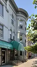 The historic district's surviving buildings from the 1880s include an Italianate house at 468 K Street, constructed for Joseph A. Baur in 1883 and designed by John Beha. Baur operated a stove store around the corner at 931 5th Street, one of three adjoining Italianate buildings constructed in 1883 and 1885 by John McDermott, a carriage builder and real estate developer. These buildings, historically known as the McDermott Shops, are on the corner of 5th and K Streets and are considered the most prominent structures in the historic district. In 1887 Charles W. King, a speculative real estate developer, built three adjoining Queen Anne style rowhouses on what was considered a nicer area of the neighborhood, Massachusetts Avenue. The three buildings, 457 and 459 Massachusetts Avenue and 833 5th Street, are located beside Milian Park. King lived in the center building that features a tower until around 1895 and rented out or sold the adjoining properties.[2][6]