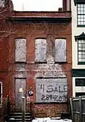 The Mount Vernon Triangle Historic District was added to the District of Columbia Inventory of Historic Sites on November 17, 2005, and the National Register of Historic Places on September 19, 2006.[5] The historic district's nomination form states: "These buildings - the sole surviving, intact collection of historic buildings in an area that is under intense re-development with contemporary high-rise condominiums and apartment buildings - stand out for their historic associations, most readily apparent in the buildings' modest size and scale, in their generally vernacular appearance, and in the wide variety and increasingly rare building types they exhibit. Together, these buildings bespeak the historic character of this semi-industrial/commercial and residential working-class neighborhood."[2]