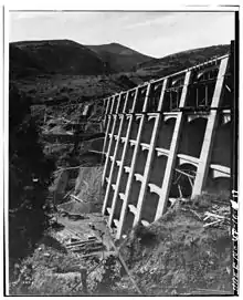 Designed by John S. Eastwood, and constructed between 1914 and 1925, the dam is an example of a mixed buttress dam and multiple arch dam construction. At the time the plans were made, the city was in need of a sufficient supply of water, especially during late summer and the middle of winter.