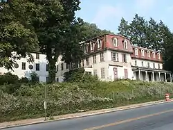 The Mountain Springs Hotel is listed on the National Register of Historic Places and is located in Ephrata, Pennsylvania, at the corner of East Main Street and Spring Garden Street. It was originally built in 1848 as a summer resort, capitalizing on its natural spring water, and hosted a variety of high-profile guests including several Presidents. The resort lost its popularity in the early 20th century and fell into disrepair, but was eventually purchased and converted into the first hospital in the Ephrata area—serving from 1937 through 1949. It remained under private ownership and became dilapidated over the following decades, culminating in its complete closure in 1988 and the auctioning of its contents in 1991. The following decade was met with a variety of redevelopment proposals, and in the years around the turn of the 21st century it was decided that the property would be redeveloped with another hotel. The majority of the Mountain Springs Hotel was demolished in 2004, retaining a portion of the Konigmacher mansion.[2] Today, a Hampton Inn hotel and Applebee's restaurant occupy the site alongside the restored building from the original Mountain Springs Hotel.