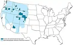 - ↑ "Distribution, Seasonality, and Hosts of the Rocky Mountain Wood Tick in the United States". academic.oup.com. Retrieved 2023-10-19.