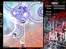 Unlike previous Touhou games, the player's spell card ability is not given its own counter, but instead, upon activation, it will consume one point of the player's shot power, which has an upper limit of five points, but can be replenished by collecting power items from killed enemies.