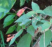 They are herbaceous plants, or shrubs. It has an erect, branched stem, without scaly rhizomes. The leaves are arranged in the opposite way. The inflorescences are axillary, in cymes or solitary flowers. The corolla is red, orange or yellow, in the form of a long tube, which is broader in the centre. With the base of the extremities and narrow throat. The fruit (or seed capsule) is a dry, ovoid or ellipsoidal bivalve capsule.[2]
