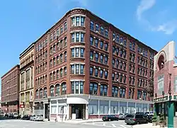 The Mowers' Block is a historic commercial block at Seven Willow St. and 67-83 Blake Street in downtown Lynn, Massachusetts. It was built in 1891 for the Mower & Brother shoemaking firm. The brick and granite building was built on the site of the Mower's old factory, in which the Great Lynn Fire of 1889 started, destroying not just their factory but a large swath of downtown Lynn as well. When completed, it was the largest building in the burned area.[2]